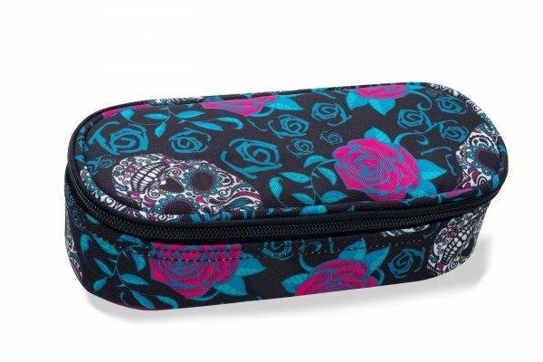 Pojemny i funkcjonalny piórnik z klapką zamykaną na suwak. Charakteryzuje się ciekawym wzorem z motywem czaszek oraz róż. Gumowe logo sprawia, że jest to bardzo klimatyczna propozycja dla każdej dziewczyny. Piórnik uszyto z wytrzymałego i wodoodpornego materiału. Pojemna komora pomieści wszystkie potrzebne akcesoria. Dodatkowo zakładki na długopisy lub inne przybory do pisania. Piórnik jest doskonałym uzupełnieniem do innych produktów CP.