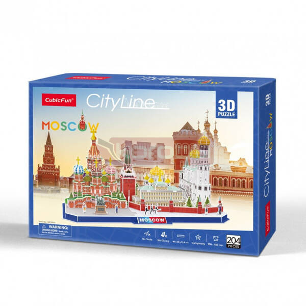 Puzzle 3D City Line Moskwa to pasjonująca zabawa dla dzieci i dla dorosłych. Cityline to wyjątkowa linia producenta Cubic Fun, która ukazuje panoramę danego miasta wraz z najbardziej charakterystycznymi dla niego zabytkami. W opakowaniu znajduje się 204 puzzli, wykonanych ze specjalnego materiału przypominającego piankę. Puzzle są ponumerowane, ponacinane i umieszczone na arkuszach. Wystarczy bez użycia siły wycisnąć element z arkusza i zmontować go zgodnie z dołączoną instrukcją, bez użycia kleju ani specjalnych narzędzi.