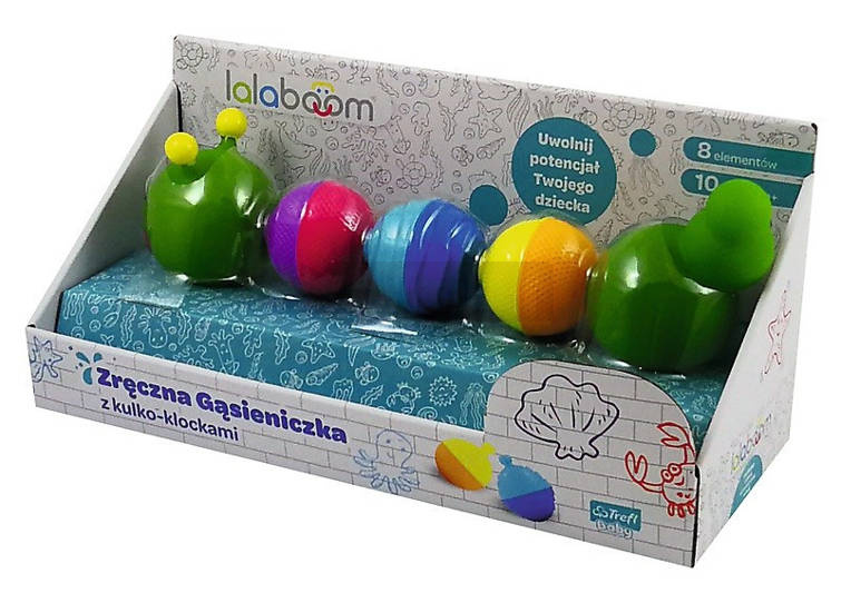 Zręczna Gąsieniczka marki Lalaboom dostarcza wiele zróżnicowanych wrażeń dotykowych ze względu na różne faktury poszczególnych elementów. Miękkie części pozwalające na ściskanie stymulują czucie głębokie.