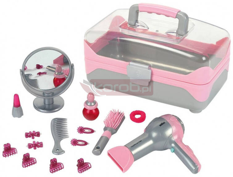 Zestaw na licencji Braun zapakowany jest w nowoczesną walizeczkę z transparentną pokrywą, co zapewnia łatwość przechowywania wszystkich elementów i utrzymanie ich w porządku. Walizeczka ta wykonana jest z grubego tworzywa bardzo dobrej jakości. Na górze zamontowana jest ergonomiczna rączka, a przed niekontrolowanym otwieraniem się zabezpiecza ją klips spinający obie części. Wszystkie urządzenia wykonane są identycznie jak prawdziwe (dla dorosłych) z serii Braun FuturPro Ion-Care. Suszarka dmuchająca powietrzem wyposażona jest w końcówkę do prostowania włosów. Jest to komplet doskonały dla wymagającej, profesjonalnej, małej fryzjerki.