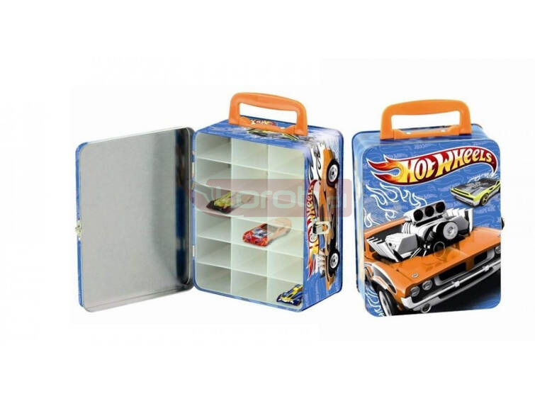 Cała walizeczka wykonana jest z metalu i zadrukowana obrazkami aut Hot Wheels oraz logo serii.
