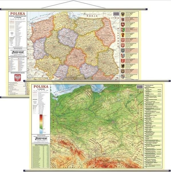 Mapa ścienna - fizyczno-admini. 1:1 800 000 Polska