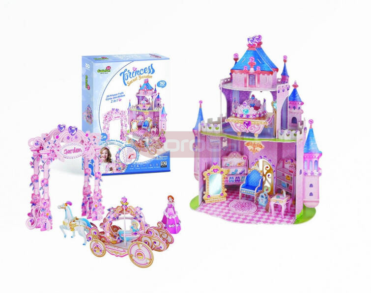 Puzzle 3D Księżniczka Sekretny Ogród to pasjonująca zabawa dla dzieci i dla dorosłych. W opakowaniu znajduje się 95puzzli, wykonanych ze specjalnego materiału przypominającego piankę. Puzzle są ponumerowane, ponacinane i umieszczone na arkuszach. Wystarczy bez użycia siły wycisnąć element z arkusza i zmontować go zgodnie z dołączoną instrukcją, bez użycia kleju ani specjalnych narzędzi.
