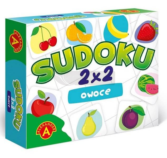 Gra Sudoku skierowana do młodszych dzieci. Tradycyjnie występujące w grze cyfry zastąpione zostały szesnastoma kartonikami z ilustracjami owoców. Zadanie polega na ułożeniu obrazków w diagramie 4 x 4 w taki sposób, żeby w każdym wierszu, w każdej kolumnie i w każdym z 4 pogrubionych kwadratów (2 x 2) znalazło się po jednym niepowtarzającym się obrazku. Przyjemny zabawowy sposób na rozwijanie myślenia logicznego i matematycznego najmłodszych.