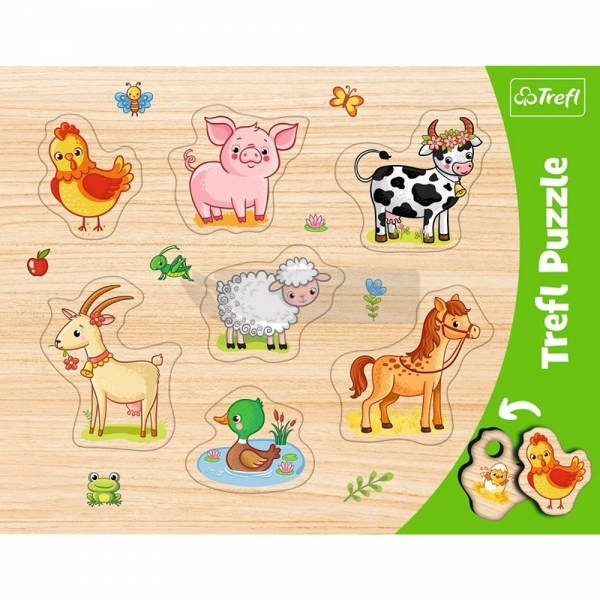 RAMKOWE UKŁADANKI KSZTAŁTOWE to duże, tematyczne puzzle dla najmłodszych dzieci. Dzięki otworom znajdującym się na odwrocie planszy, z łatwością można wyjąć każdy element i zobaczyć co się pod nim kryje.