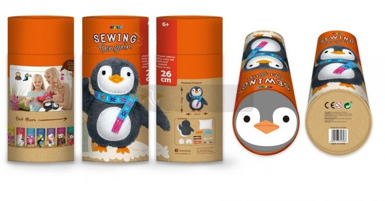 Piękny pingwin do włąsnoręcznego uszycia. Miękki materiał, rozmiar pluszaka po uszyciu to 26x24 cm.