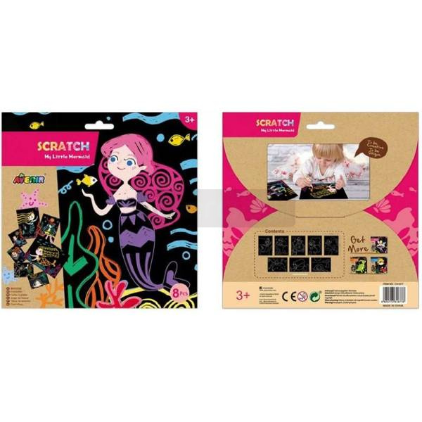 Avenir Scratch to zupełnie nowe podejście do prac ręcznych. Wyjątkowy arkusz, na którym tworzy się poprzez zdrapywanie warstwy wierzchniej, by odsłonić wielobarwną warstwę spodnią. Zabawka kreatywna najwyższych lotów, pozwalająca nie tylko tworzyć piękne prace, ale także dająca doświadczenia sensoryczne - dzięki użyciu odpowiedniego narzędzia i zachowywania się papieru podczas zabawy dziecko odbiera nowe wrażenia dotykowe. W zestawie są arkusze (8 szt.) do zdrapywania z liniami pomocniczymi oraz patyczek do zdrapywania. Dla dzieci powyżej 3. roku życia. Opakowanie: 23 x 23 cm.