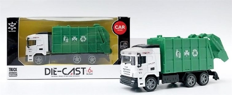 Zielono-biała śmieciarka w skali 1:64 to fascynująca zabawka dla maluchów, które kochają pojazdy specjalne.
