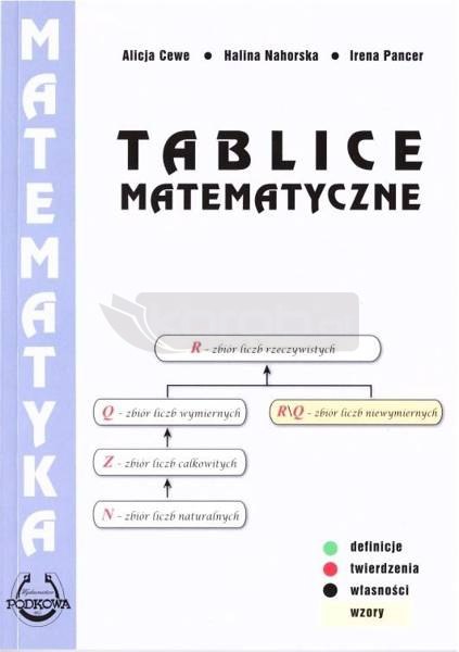 W książce "Tablice Matematyczne" zawarte są wiadomości z zakresu matematyki szkoły podstawowej, gimnazjum i szkoły średniej.