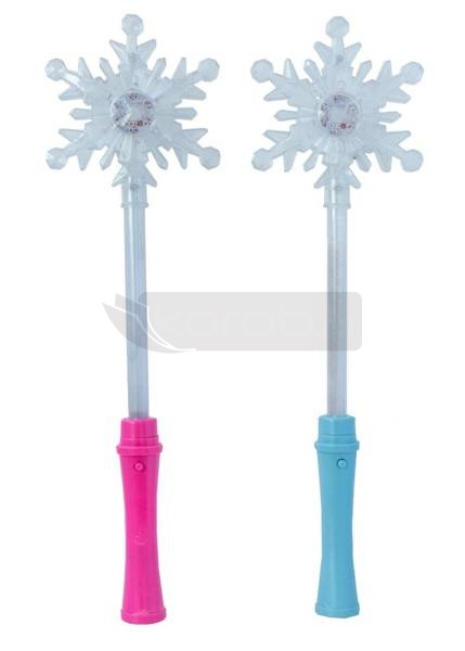 Świecąca różdżka o długosci 39 cm z płatkiem śniegu. Zabawka zasilana 4 bateriami AG13, dołączone.