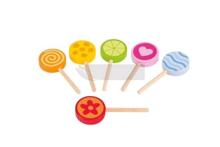 Drewniane słodycze do zabawy! Lizaki, które wyglądają bardzo smakowicie dzięki swoim żywym barwom i ciekawym wzorom, będą "smakowały" wszystkim gościom przyjęcia pluszaków. Niewątpliwą zaletą jest możliwość wielokrotnego czerpania przyjemności z takich lizaków. Zestaw zawiera 6 sztuk kolorowych lizaków.