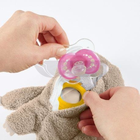 Schowek i zawieszka do smoczka od Fisher-Price z linii Clipimals to unikalny produkt, który spełnia podwójną funkcję. Przyczep ulubiony smoczek dziecka (smoczek nie znajduje się w zestawie) do mięciutkiego, pluszowego zwierzątka, aby nigdy się nie zgubił i zawsze był w pobliżu. A kiedy nie będzie używany - przechowuj go w kieszonce na pleckach zwierzątka, dzięki czemu pozostanie zawsze czysty. Zwierzątko posiada także klips, który można przyczepić do ubrania dziecka. Produkt można prać w pralce. Do wyboru wydra, lama lub leniwiec - sprzedawane oddzielnie w zależności od dostępności. Cechy produktu: Do użytku od urodzenia Pasuje do większości smoczków, dzięki czemu Twoje dziecko może korzystać z ulubionego Mocuje się do ubrania dziecka za pomocą lekkiego klipsa Smoczek przechowuj w kieszonce (smoczek nie znajduje się w zestawie) Można prać w pralce