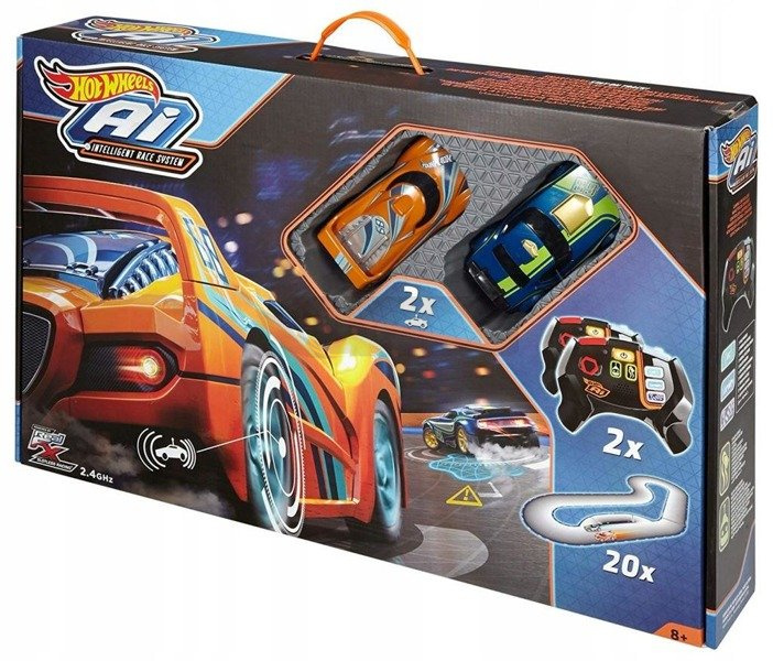 Hot Wheels A.I. - Zestaw Sartowy - zawiera wszystko, czego potrzeba do wyścigu! Nigdy wcześniej nie miałeś takiej kontroli. Zaprogramuj swój kontroler, wybierając spośród 3 trybów wyścigu i 3 poziomów trudności.