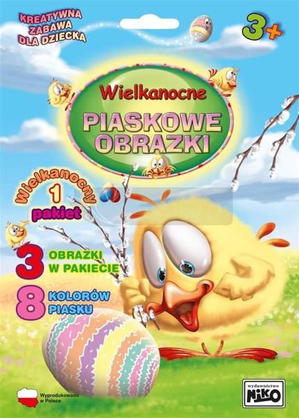 Piaskowe obrazki Pakiet 1 to kreatywna zabawa dla dzieci, polegająca na tworzeniu barwnych ilustracji z piasku. Zestaw zawiera trzy obrazki: kurczak. koszyk. pisanka, 8 woreczków z kolorowym piaskiem oraz patyczek, za pomocą którego odkrywamy klejącą warstwę ilustracji. Przy tej zabawie wyobraźnia nie zna granic! OPAKOWANIE FOLIA CPP