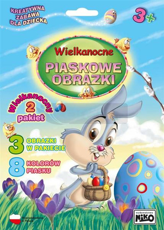 Piaskowe obrazki pakiet nr 2 to kreatywna zabawa dla dzieci, polegająca na tworzeniu barwnych ilustracji z piasku. Zestaw zawiera trzy obrazki: zajączek, kogutek, kwiaty w pisance; 8 woreczków z kolorowym piaskiem oraz patyczek, za pomocą którego odkrywamy klejącą warstwę ilustracji. Przy tej zabawie wyobraźnia nie zna granic! OPAKOWANIE FOLIA CPP