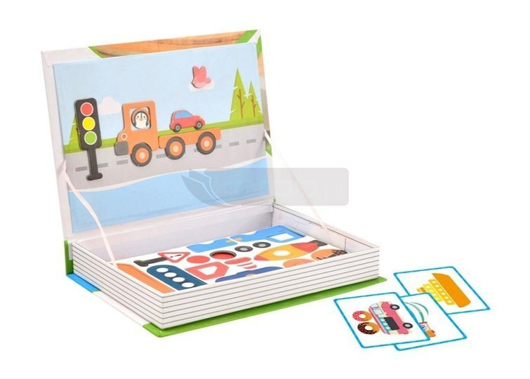 W zestawie 57 elementów - magnetyczne pojazdy, znaki drogowe, ostrzegawcze oraz 8 obrazków z pojazdami. Dziecko może układać na załączonej planszy pojazdy, tworzyć obrazki z załączonych elementów. Super zabawa, podczas której można nauczyć się nazw środków transportu i oznaczeń drogowych. Wiek: 3+ Wymiary opakowania: 26.5x4x19 cm