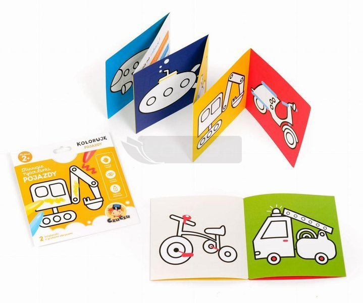 W dłuuugich książeczkach harmonijkach znajdziecie 23 ilustracje pełne prostych obrazków z grubymi obrysami, które inspirują do podejmowania samodzielnych prób kolorowania.