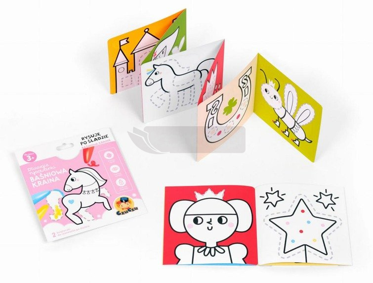 W dłuuugich książeczkach harmonijkach znajdziecie 23 ilustracje pełne prostych obrazków, które inspirują do rysowania po śladzie. To naturalny wstęp do rysowania i przyszłej nauki pisania.