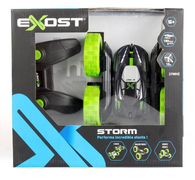 Gotowi na ekstremalnie odjechaną przejażdżkę? Storm to pojazd, który wykonuje prawdziwe akrobacje! Posiada niezależne osie skrętne, dzięki czemu potrafi obracać koła i pokonywać przeszkody. Jego dwustronny korpus urozmaici zabawę. Pojazd dostępny w dwóch kolorach do wyboru, sterowany za pomocą dołączonego pilota.