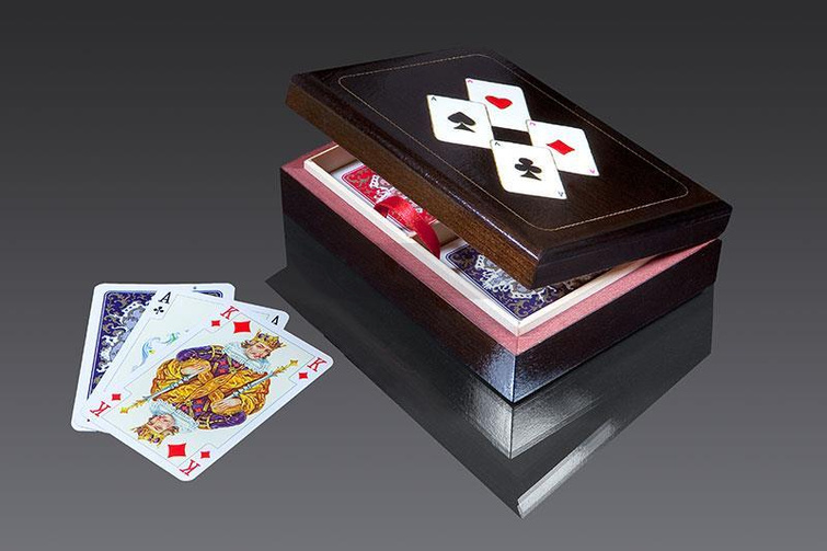 Ekskluzywny zestaw kart "Luxury" renomowanej firmy Ferd. Piatnik & Sohne. Drewniana, ciemnobrązowa, płaska kasetka zawiera 2 talie kart. "Luxury" to prawdziwa esencja kart, sztandarowy wzór Piatnika, znany w Polsce od lat przedwojennych. Na awersach jedyne w swoim rodzaju Piatnikowskie figury. Rewersy są nie tylko szlachetne, ale także symetryczne i wyraźnie różniące się od siebie. Cechy te sprawiają, że to doskonałe karty dla wszystkich, od początkujących po wytrawnych graczy. Talie składają się z 55 plastikowanych kart o gramaturze 310 i nieco większych niż standardowe wymiarach 62 x 91 mm. Idealne zarówno do brydża, pokera, remika jak i innych gier. Wyroby wiedeńskiej fabryki Ferd. Piatnik & Sohne od 1824 roku urzekają bogactwem wzorów i perfekcją wykonania. Jakość i tradycja!