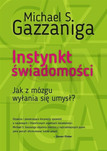 Instynkt świadomości to zajmująca i pouczająca lektura poświęcona zagadnieniom, o których inni często piszą w sposób nudny lub niezrozumiały. Michael S. Gazzaniga był jednym z pierwszych naukowców naszych czasów, którzy ośmielili się poruszyć temat świadomości. Zajmuje się nim od pięćdziesięciu lat i nieustannie dzieli się z nami nowymi, interesującymi pomysłami. Twoja świadomość będzie zachwycona. JOSEPH E. LEDOUX, Profesor Uniwersytetu Nowojorskiego, dyrektor Emotional Brain Institute