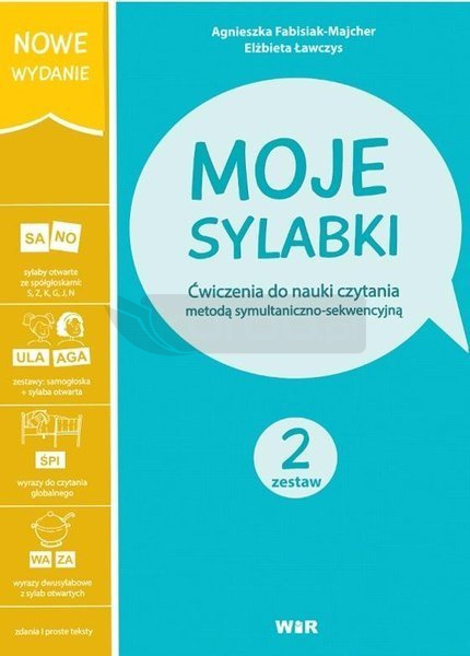 Program MOJE SYLABKI służy dzieciom od ponad dziesięciu lat. Umożliwia naukę czytania w najłatwiejszy sposób - sylabami. W skład programu wchodzi pięć teczek z ćwiczeniami (MOJE SYLABKI, zestawy 1-5) oraz inne, zintegrowane z nimi publikacje.