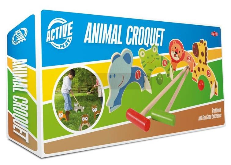 W tę zabawną i tradycyjną grę można grać zarówno wewnątrz, jak i na zewnątrz. Umieść bramki zwierzęce na trawie lub na podłodze i spróbuj uderzyć w nie drewnianymi kulkami za pomocą młotka. Drewniane furtki, piłki i młotki. Śliczne postacie zwierząt. Świetna zabawa dla wszystkich.