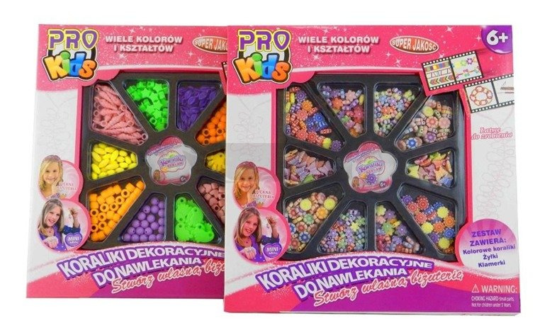 Zestaw do samodzielnego wykonywania biżuterii, kolorowe koraliki w różnych kształtach i kolorach. Wiek: 6+