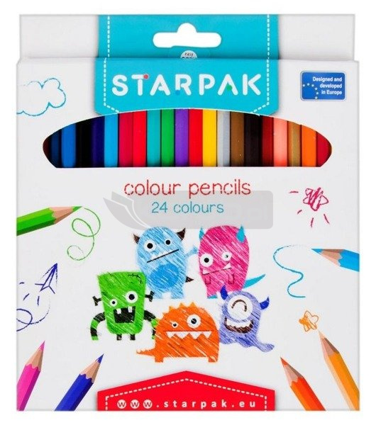 Komplet 24 kredek w kartonowym pudełku zdobionym motywem w potworki. Wysoka jakość rysików.