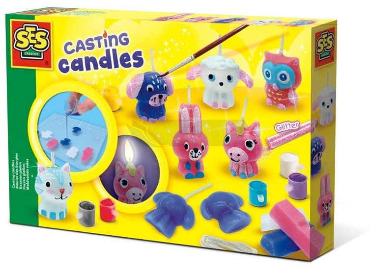 Rozpuść pachnący wosk w kuchence mikrofalowej i wlej go na formę z sześcioma wesołymi zwierzątkami. W zestawie knoty. Teraz pomaluj je dostarczoną farbą i brokatem. Te naprawdę fajne domowe świece są zbyt ładne, aby je zapalić!