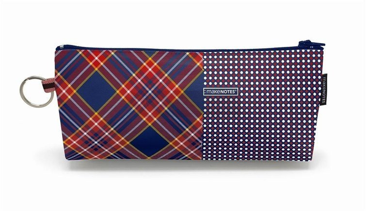 Ozdobna kosmetyczka, zamykana na zamek, bez przegródek w środku.