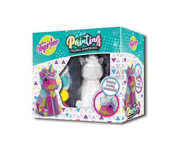 Zestaw zawiera figurkę jednorożca do malowania, 5 farbek, pędzelek i dwie tacki do mieszania farb. Produkt przeznaczony dla dzieci w wieku 6+.