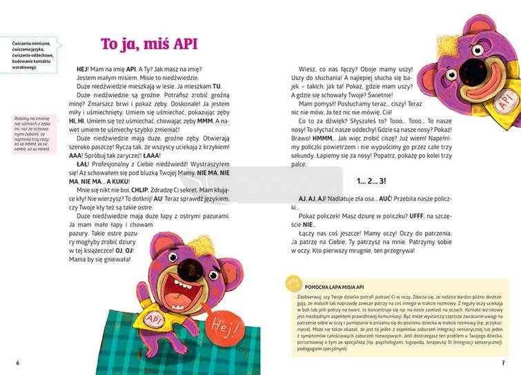 W tej pięknie ilustrowanej książce znajduje się pacynka misia API, gotowa do zabawy. Polecamy wszystkim rodzicom, logopedom, terapeutom!