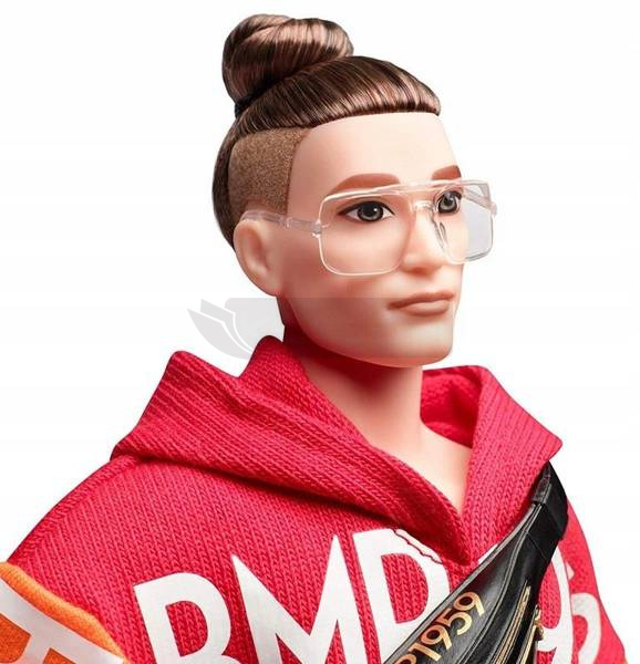 Ta lalka BMR1959 ma pomarańczowo-czerwoną bluzę z kapturem i niebieskie spodenki z logo. Akcesoria to okulary w stylu lotnika, torba założona przez jedni ramie, wszystkie ze złotymi detalami. Fajna fryzura kokowa kończy wygląd.