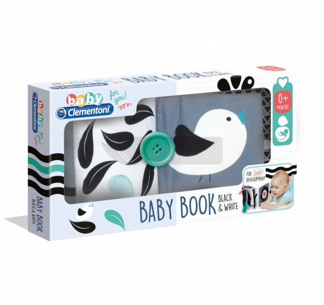 - Miękka książeczka z czarno-białymi ilustracjami, które rozwijają percepcję wzrokową niemowląt w pierwszych miesiącach życia.