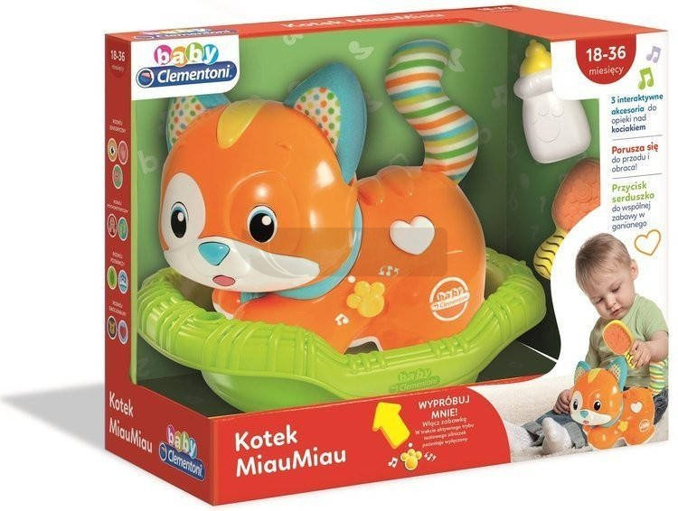 Kociak porusza się do przodu i do tyłu, zachęcając dziecko do wtórowania mu podczas zabawy. Rozpoznaje, kiedy jest przez dziecko brany i kładziony w łóżeczku i aktywuje tryb nocny. Rozpoznaje przytulenie i troskę o niego.Mruczy, kiedy jest czesany i kiedy butelka dotknie jego ust. Cieszy się również, gdy nadchodzi czas posiłku. Stymuluje umiejętności językowe i wyobraźnię, wzmacnia rozwój umiejętności manualnych i motorycznych. Jego uszy i ogon zrobione są z miękkiego materiału.