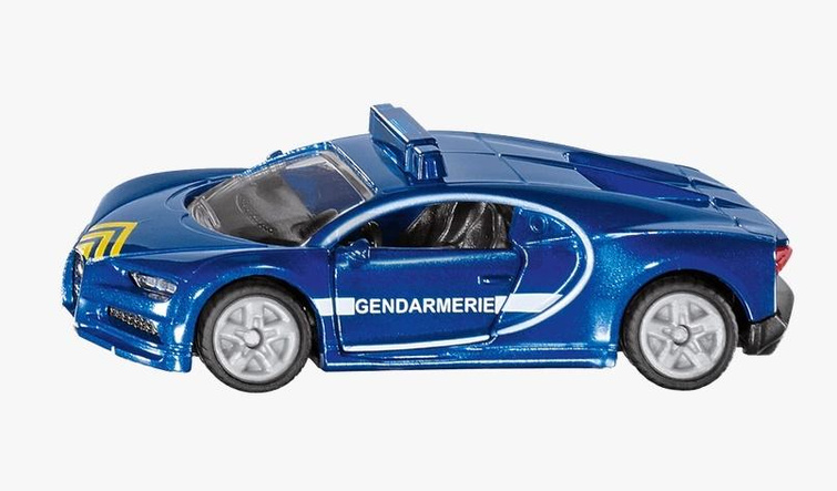 Model samochodu Bugatti Chiron marki SIKU, to wysokiej jakości zabawka, która jest odwzorowaniem prawdziwego pojazdu francuskiej żandarmerii. Auto posiada metalową karoserię i otwierane drzwi. Na dachu samochodu umieszczony jest "kogut" sygnalizacyjny, charakterystyczny dla aut specjalnych.