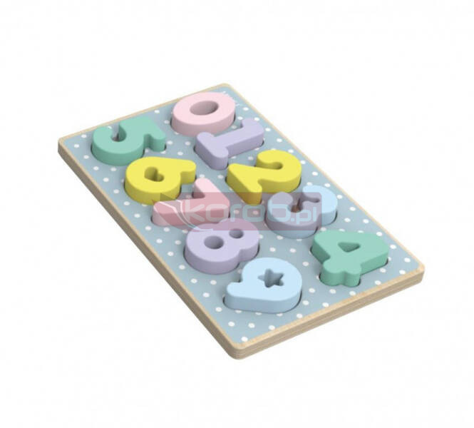 Dopasowywanie cyferek do właściwych miejsc na planszy rozwija koordynację ręka-oko, uczy rozpoznawania kształtów, a także wspomaga naukę liczenia i rozpoznawania cyfr. Łagodne, pastelowe kolory zachęcą do zabawy i pobudzą wyobraźnię, dzięki przepięknym odcieniom fioletowego, niebieskiego i żółtego koloru. Farby wodne, którym pokryto układankę są całkowicie nietoksyczne i dzięki temu jeszcze bardziej bezpieczne dla Twojej pociechy.
