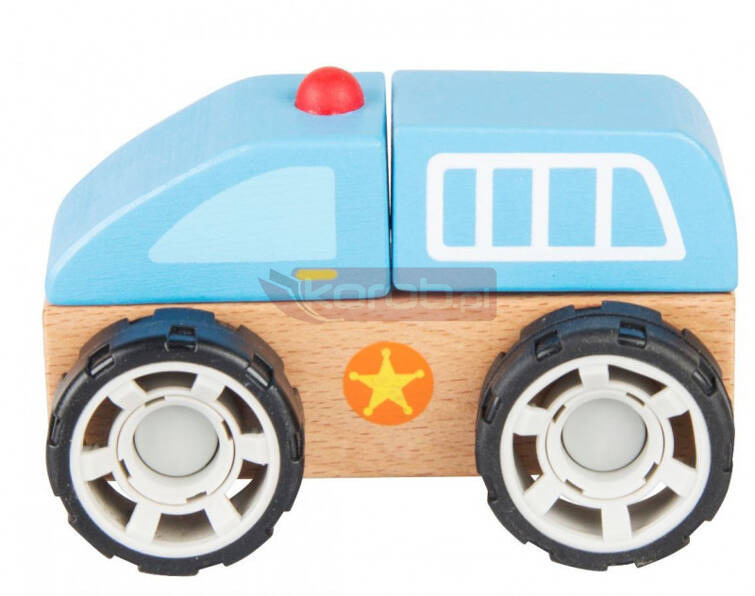 Samochodzik policja wykonany z drewna pomalowanego bezpiecznymi farbami wodnymi. Maluchy uwielbiają autka a gdy dodatkowo można je rozmontować zabawa nie ma końca! Pojazd składa się z kilku elementów, które można oddzielić od niego jak klocki. Połącz elementy kilku samochodzików z tej serii aby stworzyć własny wymarzony pojazd! Zabawka absorbuje uwagę dziecka, pozwala rozwijać zdolności manualne i daje masę frajdy!