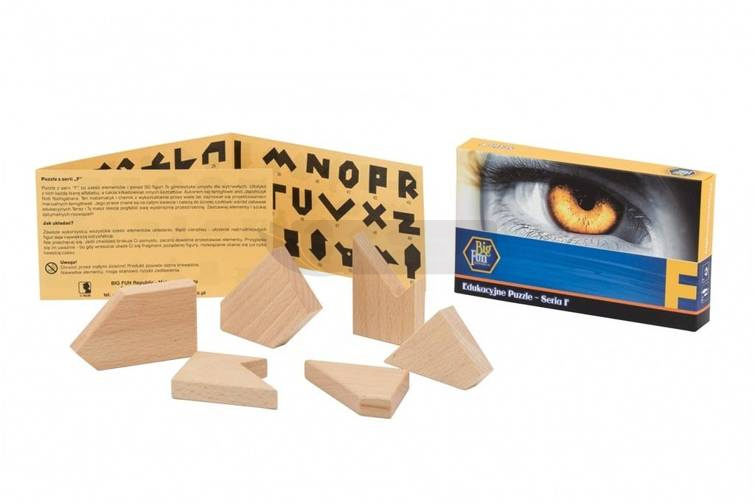 Czy z sześciu elementów można ułożyć kształty liter całego alfabetu ? Tak! Z sześciu klocków puzzli z serii F można ułożyć nie tylko cały alfabet, ale dodatkowo kilkadziesiąt innych figur. Spróbuj swoich sił i rozwiń wyobraźnię odnajdując sposoby ułożenia kolejnych kształtów.