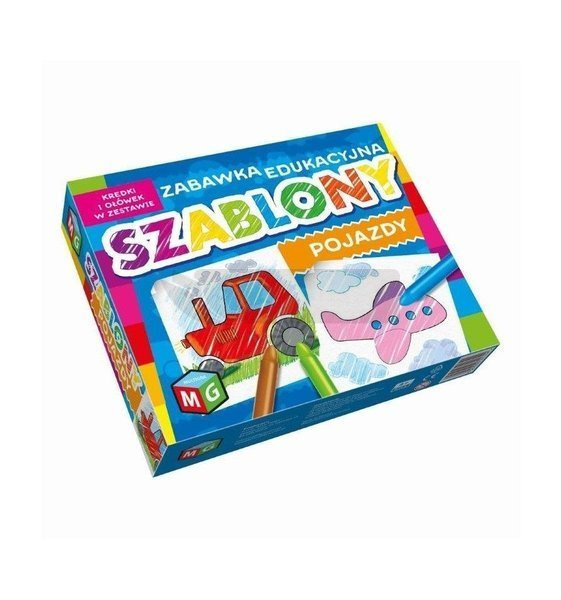 W zestawie znajdują się szablony, które umożliwiają łatwe i szybkie narysowanie konturu 8 różnych pojazdów. Kontur należy rysować ołówkiem, według szablonu ułożonego na kartce papieru z załączonego bloczka. Narysowane sylwetki można dowolnie pokolorować kredkami. Aby rysunek był w pełni ukończony, dziecko powinno domalować tło i wzbogacić rysunek szczegółami.