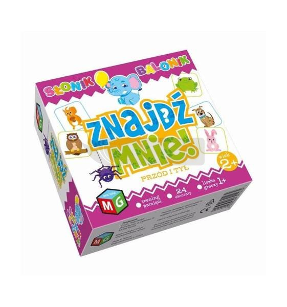 Słonik Balonik wychodzi naprzeciw potrzebom najmłodszych. Dzięki zastosowaniu dużych elementów z wysokiej jakości grubej tektury, dzieci z łatwością je chwytają, ćwicząc małą motorykę. Kolorowe obrazki rozbudzają w maluchach wyobraźnię, a zróżnicowane zadania świetnie wpływają na ich rozwój. Znajdź mnie: przód i tył to przyjemna zabawa dla dzieci i ich rodziców. Celem zabawy jest odnalezienie dwóch tabliczek - na jednej widać tył, a na drugiej przód zwierzaka. Zabawa w takiej formie rozwija w dziecku zdolność myślenia abstrakcyjnego oraz rozpoznawania tego samego obiektu widzianego z różnych stron. Gruba tektura i prosty kształt elementów sprawiają, że zabawka jest odpowiednia nawet dla małych dzieci. Przyjemne kolorowe ilustracje ułatwiają dziecku rozpoznawanie zwierząt i odróżnianie ich od siebie.
