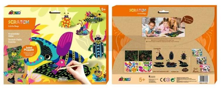 Wydrapywane owady to ciekawa propozycja dla kreatywnych dzieci. Prosta technika wydrapywania pozwala na stworzenie przepięknych oryginalnych figurek przy niewielkim nakładzie pracy. Zdrap i stwórz 6 uroczych owadów z ruchomymi elementami. W zestawie: 2 obrazki-wydrapywanki ze sceneriami, elementy do stworzenia 6 kukiełek, patyczek do wydrapywania