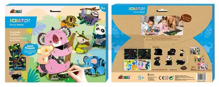 Wydrapywane zwierzątka to ciekawa propozycja dla kreatywnych dzieci. Prosta technika wydrapywania pozwala na stworzenie przepięknych oryginalnych figurek przy niewielkim nakładzie pracy. Zdrap i stwórz 6 uroczych zwierzątek z ruchomymi elementami. W zestawie: 2 obrazki-wydrapywanki ze sceneriami, elementy do stworzenia 6 kukiełek, patyczek do wydrapywania