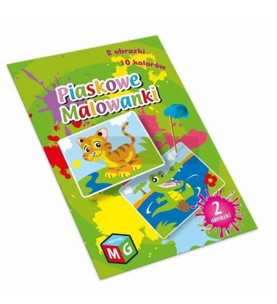 Zawartośc pudełka: 2 obrazki do kolorowania, patyczek, 10 woreczków kolorowego piasku, instrukcja.