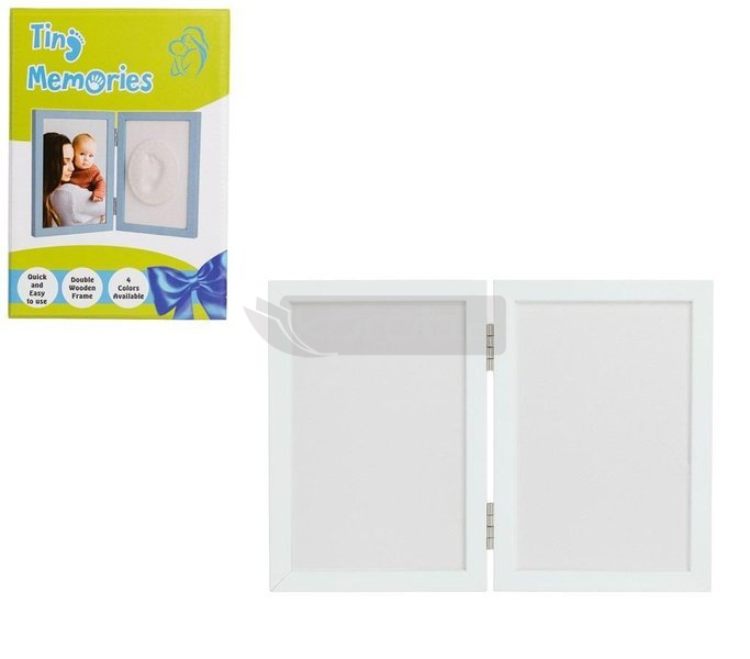 Zestaw Tiny Memories Ramka z Glinką pozwala na bardzo szybkie i niezwykle proste wykonanie pamiątkowego odcisku np. rączki, nawet u bardzo małych Dzieci. Nasz produkt stanowi podwójna ramka, wykonana z naturalnego drewna w jednym z 4 kolorów do wyboru. Biały, szary, niebieski i różowy. W zestawie znajduje się także wyjątkowo miękka i plastyczna glinka. Jest ona bardzo delikatna i lekka, dzięki czemu nawet najmniejsze maluchy wraz z rodzicami będą miały fantastyczną zabawę podczas wykonywania pamiątkowego odcisku. Dużym atutem naszej glinki jest także to, że nie ma potrzeby jej wypalać. Jest ona tak przygotowana, aby wysychała samoczynnie na powietrzu. Każdy z zestawów zawiera szczegółową instrukcję obsługi oraz umieszczony jest w przepięknym opakowaniu. Nasz produkt może śmiało stanowić uroczy prezent dla Maluszka, jak również być niespodzianką sprawioną mu przez rodziców.