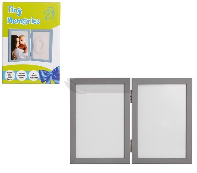 Zestaw Tiny Memories Ramka z Glinką pozwala na bardzo szybkie i niezwykle proste wykonanie pamiątkowego odcisku np. rączki, nawet u bardzo małych Dzieci. Nasz produkt stanowi podwójna ramka, wykonana z naturalnego drewna w jednym z 4 kolorów do wyboru. Biały, szary, niebieski i różowy. W zestawie znajduje się także wyjątkowo miękka i plastyczna glinka. Jest ona bardzo delikatna i lekka, dzięki czemu nawet najmniejsze maluchy wraz z rodzicami będą miały fantastyczną zabawę podczas wykonywania pamiątkowego odcisku. Dużym atutem naszej glinki jest także to, że nie ma potrzeby jej wypalać. Jest ona tak przygotowana, aby wysychała samoczynnie na powietrzu. Każdy z zestawów zawiera szczegółową instrukcję obsługi oraz umieszczony jest w przepięknym opakowaniu. Nasz produkt może śmiało stanowić uroczy prezent dla Maluszka, jak również być niespodzianką sprawioną mu przez rodziców.