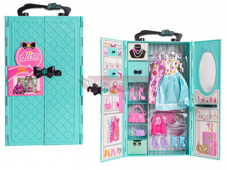 Garderoba, szafa z ubrankami i akcesoriami, 3 sukienki, 3 pary butów, 2 torebki