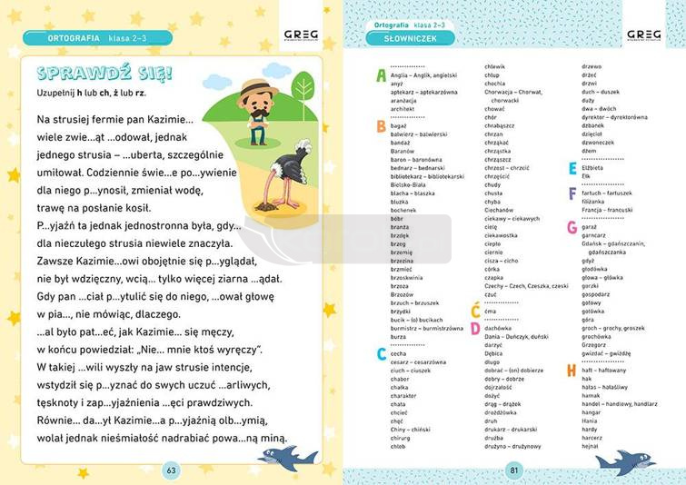 Ortografia. Karty pracy dla klas 2-3 to zbiór ćwiczeń z zakresu poprawnej pisowni, które sprawią, że ortografia przestanie być trudna. Karty pracy zwierają nie tylko zadania, ale też cenne wskazówki, które pomogą je rozwiązać oraz zapamiętać reguły pisowni. Na końcu znajduje się słowniczek ze wszystkimi potrzebnymi wyrazami. Jedna karta z zadaniami dziennie nie zniechęca ogromem pracy, a regularne ćwiczenia przynoszą trwałe efekty.