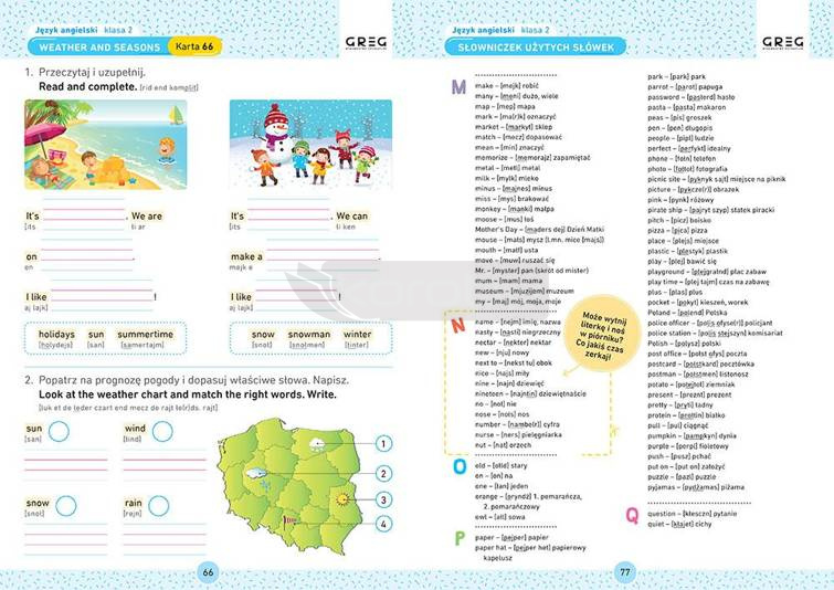 Wielkim atutem książki jest uproszczony zapis wymowy każdego słówka i zwrotu (w tym także poleceń) oraz słowniczek angielsko-polski obejmujący wszystkie słowa z książki.
